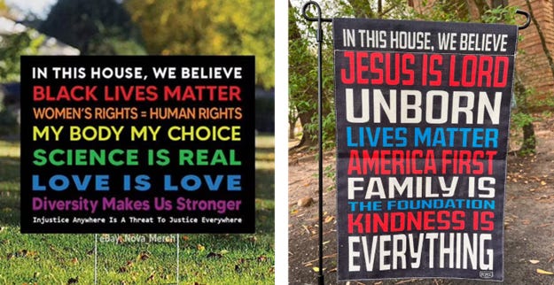 How is it possible that two passionate people can reach such incompatible views as to what constitutes moral behavior? How is it that in contemporary America whole communities exist just miles apart whose guiding principles are as divergent as those enunciated in their yard signs pictured above? The argument I will briefly develop here is that it has just enough to do with genetics for us to be grateful for genetic diversity. And further that the solution to a more harmonious society lies, as a consequence, in a recommitment to virtue ethics.